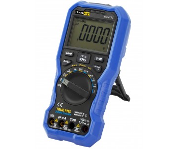 Мультиметры переносные ПрофКиП МП-177 предназначены для измерения напряжения постоянного и переменного тока, силы постоянного и переменного тока, сопротивления постоянному току, электрической ёмкости и частоты. Приборы оснащены жидкокристаллическими дисплеями для индикации результатов измерений. Мультиметры отличает компактность, незначительная масса и возможность автономного питания в различных условиях эксплуатации. Мультиметры предназначены для использования в цеховых и лабораторных условиях, при наладке и ремонте радиотехнического оборудования, электронных схем и узлов автоматики, а также при тестировании и ремонте промышленных электросетей. Высокоточный прибор для измерения параметров тока, напряжения и сопротивления. Модель позволяет работать с током AC до 10А и DC до 20А, напряжением AC до 750В и DC до 1000В, а также сопротивлением до 60МОм. Дополнительно измеряет ёмкость до 60мФ и частоту сигнала до 9999кГц. Температурный диапазон от -50 до +400°C. Инновационный дисплей с подсветкой  обеспечивает четкость показаний. Функции включают встроенный фонарик, авто/ручное изменение диапазонов, HOLD, индикатор заряда батареи, бесконтактный индикатор напряжения